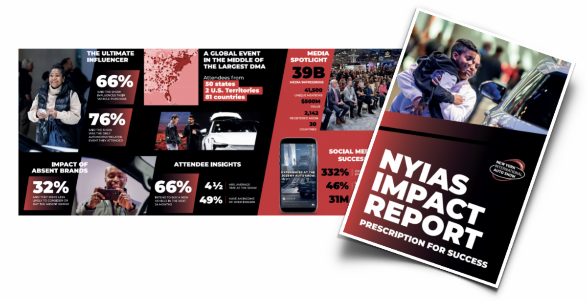 El Salón del Automóvil de Nueva York de 2025, que se celebrará la próxima primavera, marca la 125.ª edición del primer salón del automóvil de Norteamérica, que comenzó en Manhattan en 1900. El evento especial de aniversario incluirá un guiño al ilustre pasado del Salón y una mirada al futuro a través de una amplia gama de vehículos, exhibiciones y eventos extraordinarios. Si echamos la vista atrás, los resultados del Salón del Automóvil de Nueva York de 2024 ya están disponibles con la publicación hoy del Informe de Impacto de NYIAS 2024, ¡y son impresionantes! El evento volvió a cobrar vida, sirviendo como un escenario dinámico para las últimas innovaciones automotrices y captando la atención de los líderes de la industria, los medios de comunicación y los entusiastas de los automóviles por igual. Con el regreso de los principales fabricantes de automóviles y el debut de nuevas y emocionantes exhibiciones, el Salón reavivó el entusiasmo que lo convierte en un evento al que hay que asistir cada año. “Para la mayoría de los compradores de automóviles que asisten al Salón del Automóvil de Nueva York, es el único evento automovilístico al que asisten. Ese es un mensaje sorprendente para la industria automotriz. Si no asiste a este Salón, su nuevo producto no estará en el radar de un comprador de automóviles común. Más importante aún, no será una marca a la que aspiran los compradores de automóviles de la generación del milenio o de la generación Z”, dijo Mark Schienberg, presidente del Salón Internacional del Automóvil de Nueva York. Únase a nosotros el próximo año del 18 al 27 de abril de 2025 para celebrar el 125.° aniversario del Salón Internacional del Automóvil de Nueva York.
