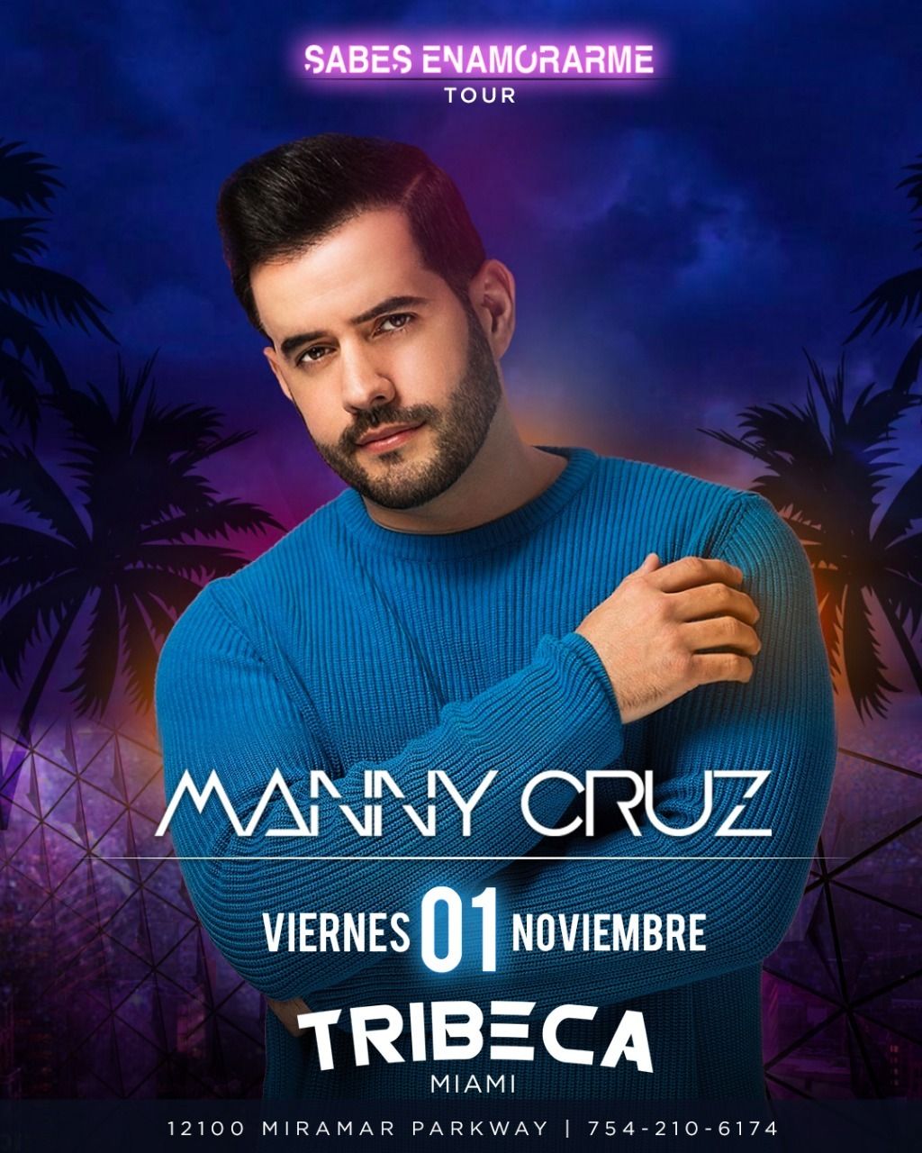 Manny, quien sigue logrando importantes escalones dentro de la música, se presentará en Miami el viernes 1 de noviembre como parte de su “Sabes Enamorarme Tour” en Tribeca Restaurant & Lounge de Miramar, Florida.